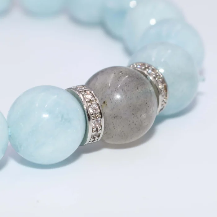 I love the balance of this bracelet. The Aquamarine soothes my stress, and the Labradorite makes me feel spiritually guarded. The design looks refined and premium.