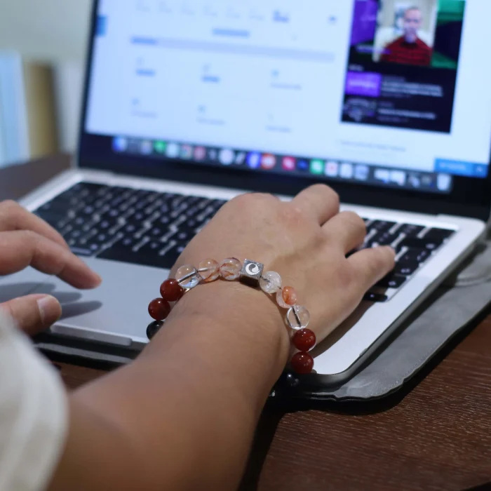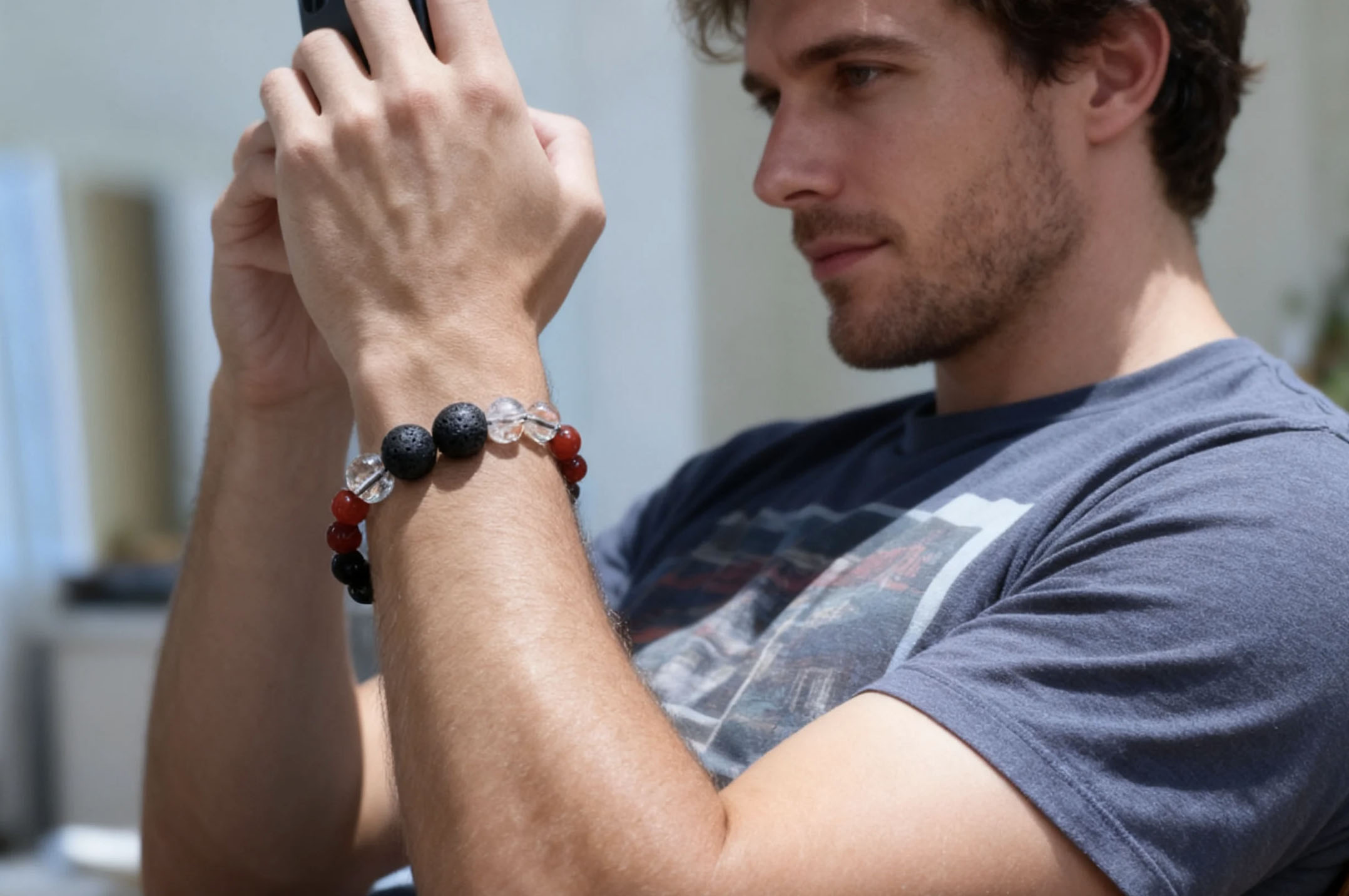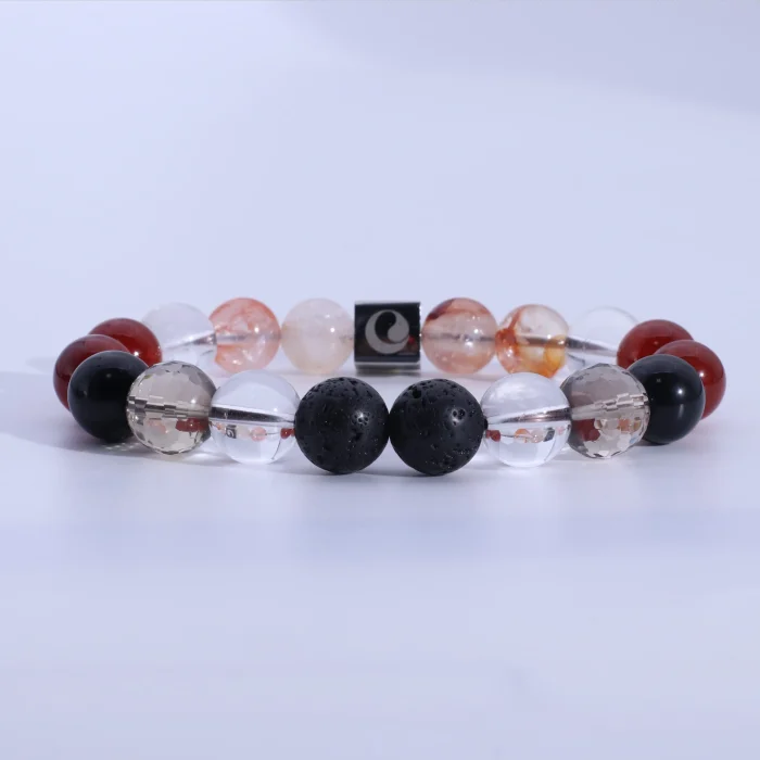 Red Lotus Bracers – The Fusion of Passion and Serenity Unveiling the essence of the Red Lotus, this bracelet combines the fiery vitality of Red Dragon Vein Agate, the protective shield of Obsidian, and the clarifying power of Clear Quartz. Rooted in the mysticism of the scarlet lotus—a symbol of both burning passion and pure enlightenment—it intertwines the energies of Fire, Water, and Metal. Red Lotus Bracers safeguards your spirit, awakens your inner flame, and guides you through unseen realms with clarity and strength.