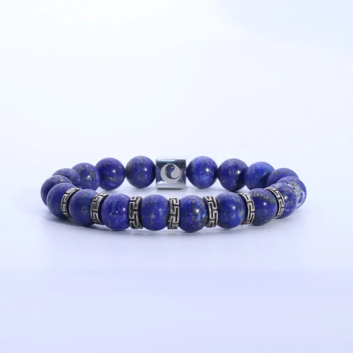 Inspired by the legacy of ancient Egyptian royalty, Sapphire Crown is a bracelet that embodies authority and wisdom. Lapis Lazuli has long been treasured as a stone of truth, wisdom, and strength, often worn by kings and nobles as a talisman. At its center rests a Yin-Yang charm, representing balance and harmony. Wearing this bracelet not only brings inner peace and deep insight but also connects you with the aura of royal elegance—granting you a sense of majesty and timeless wisdom.