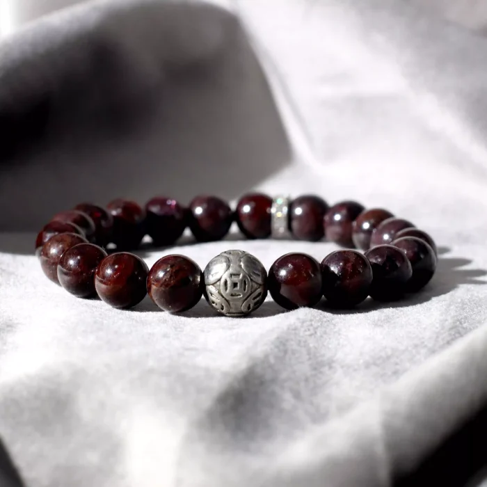Rich wine-red beads with a mirror polish—this looks like fine jewelry. Garnet gives me steady, grounded energy for long workdays, and the mantra spacer adds a calm, mindful vibe. Classy and powerful