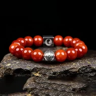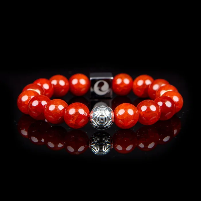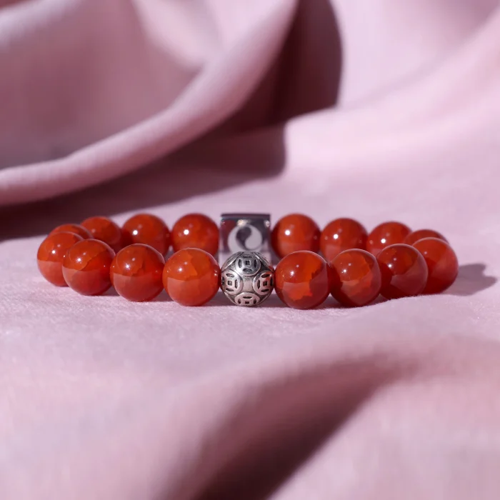 Crafted from vibrant Red Dragon Vein Agate, this bracelet radiates passion and vitality with its striking crimson hue. Accented with a finely detailed silver money bead, it is believed to enhance confidence, spark creativity, and attract good fortune. A piece that shines with both elegance and energy, Solar Blossom empowers the wearer to embrace life with renewed strength and inspiration.