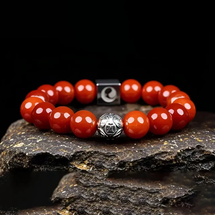 Fiery red with that dragon-vein pattern—pictures don’t capture the depth. Dragon Vein Agate gives me steady courage for client calls, and the mantra spacer adds a calm, sacred vibe. Feels like boutique jewelry