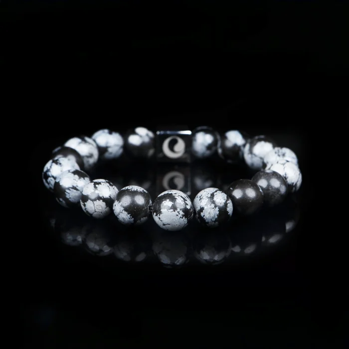 This bracelet features the distinctive snowflake-like patterns of Snowflake Obsidian, combining natural beauty with protective energy. Its black-and-white tones embody the mystique of Eastern Yin-Yang balance, making it especially meaningful for those seeking inner peace and spiritual clarity. Ideal for daily wear, Yin Yang Veil is both a stylish accessory and a spiritual companion.